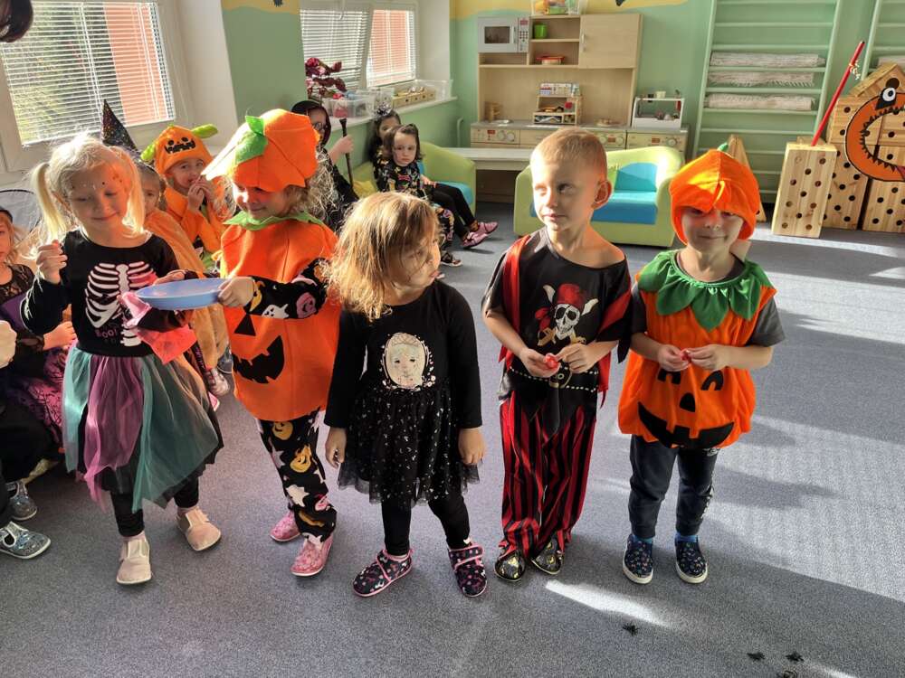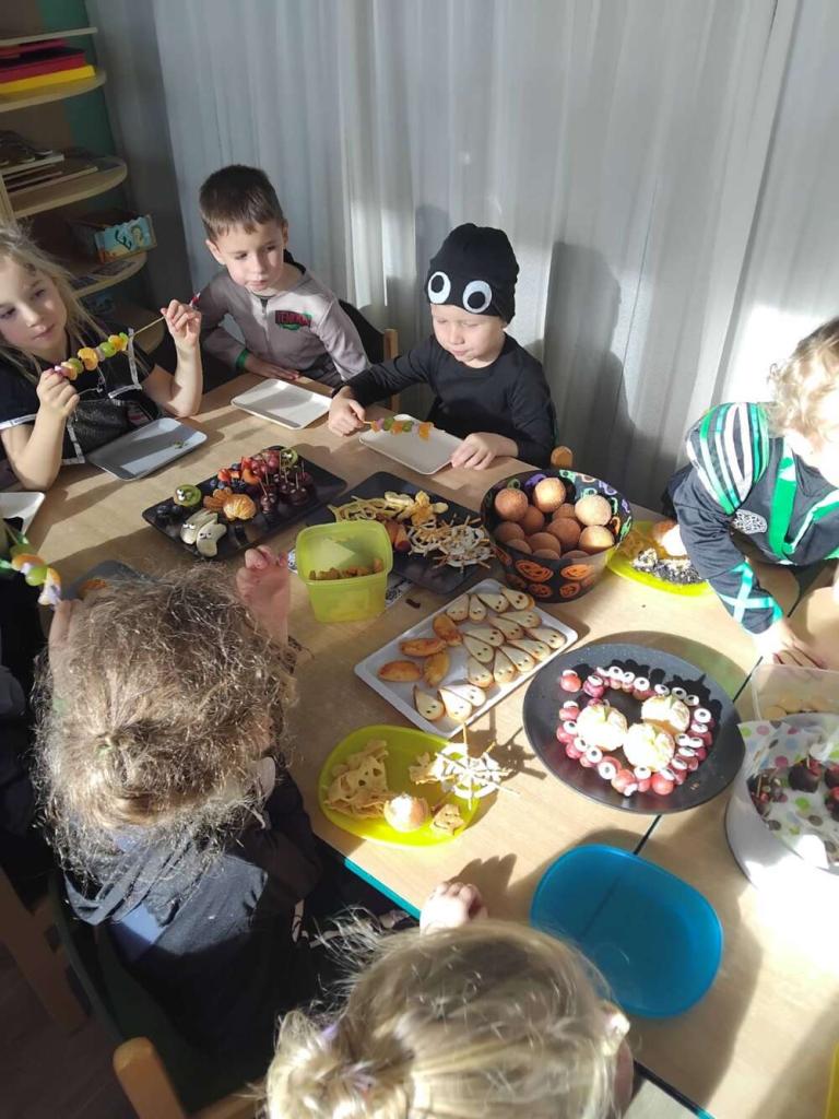 V pátek 31.10. měly děti v MŠ připravený halloweenský program. Děti přicházely v maskách, soutěžily, hrály hry, tančily a na závěr měly krásnou strašidelnou hostinu, za kterou děkujeme všem rodičům.